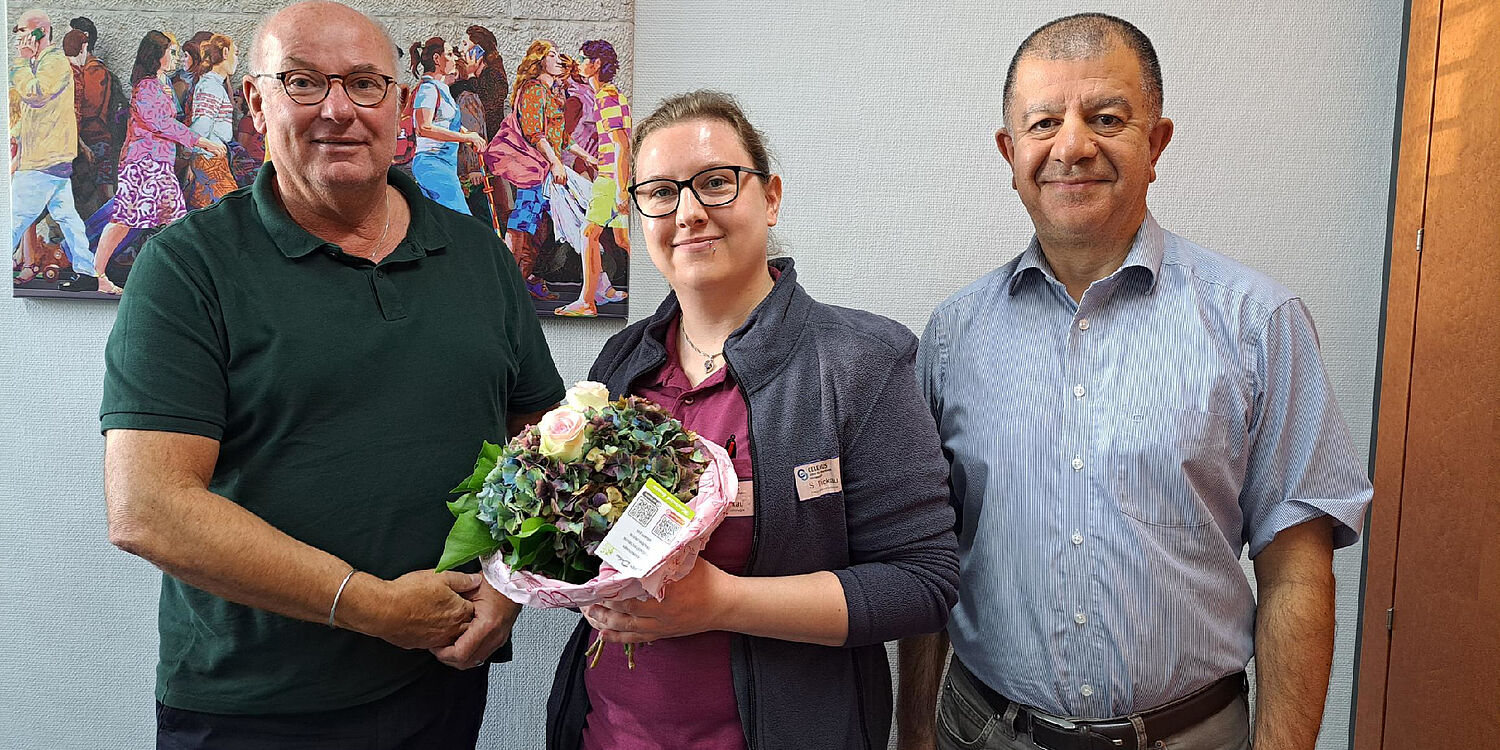 Für ihre langjährige engagierte Arbeit sprachen Ramin Momtazi (Abteilungsleiter Neuropsychologie, Musik- und Kunsttherapie) sowie Klinikdirektor Erwin Lohmer herzliche Glückwünsche aus.