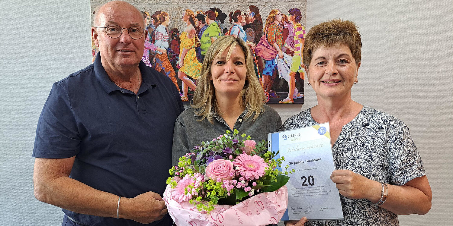 Zu diesem besonderen Anlass gratulierten Klinikdirektor Erwin Lohmer und Verwaltungsleitung Christa Limper herzlichst.