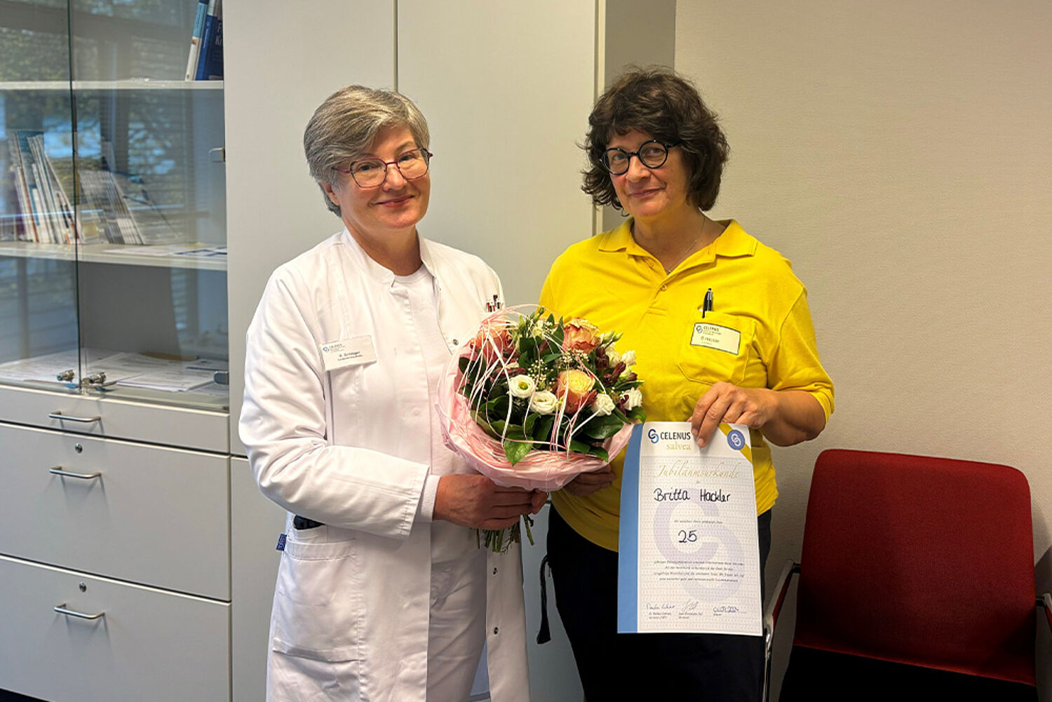 Als leitende Oberärztin der Klinik gratulierte Elena Schlegel herzlich zu diesem besonderen Anlass und würdigte den langjährigen Einsatz und die Leidenschaft, die Britta Hackler Tag für Tag in ihre Arbeit einbringt.
