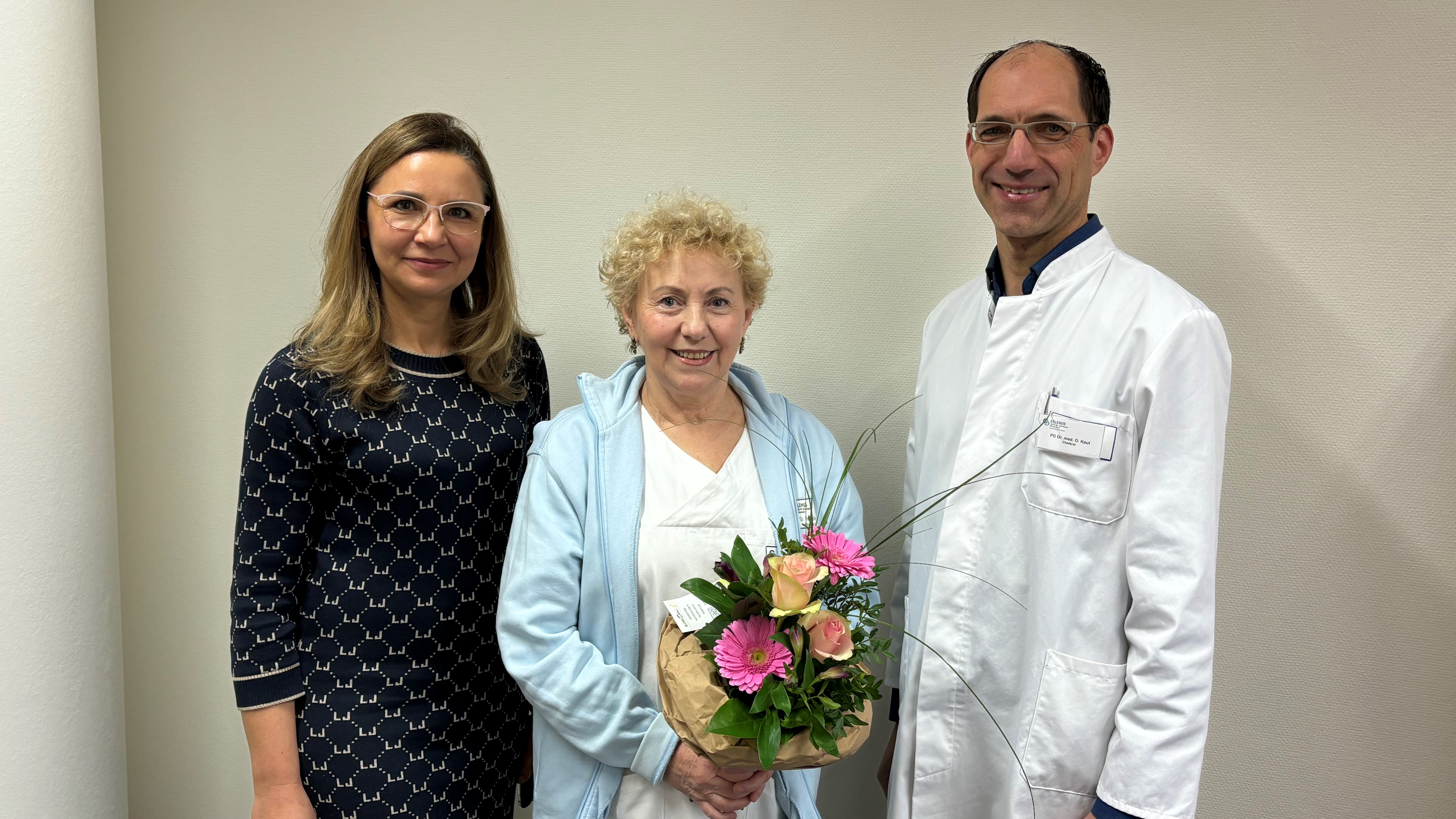 Chefarzt PD Dr. med. Oliver Kaut und Pflegedienstleitung Olga Jerschowa bedankten sich im Namen der Klinikleitung für ihr Engagement und wünschten ihr für den neuen Lebensabschnitt nur das Beste.