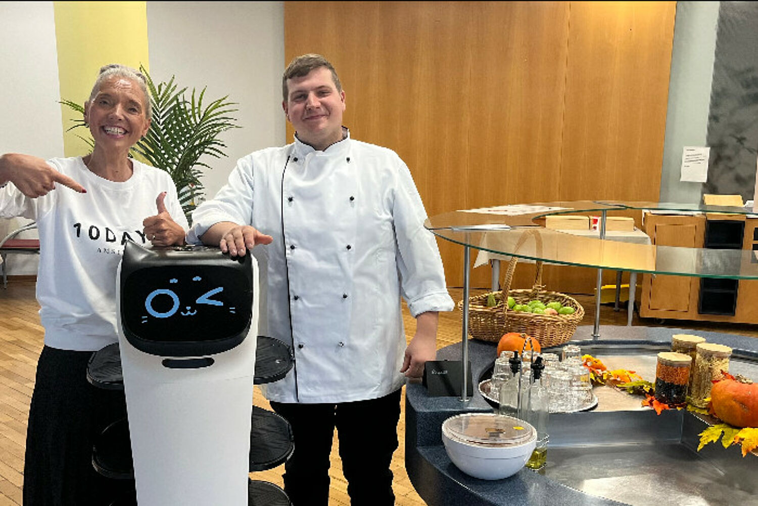 Die Roboter fahren zu verschiedenen, vorab festgelegten „Stützpunkten“ im Speisesaal, an denen sie von den Mitarbeitenden in Empfang genommen werden, welche unseren Rehabilitanden dann die jeweilige Mahlzeit servieren. Die fortschrittlichen, technischen Helfer werden vom Service-Team sehr geschätzt. Sie zaubern durch ihre zugewandte, tierische Art auch unseren Rehabilitanden ein Lächeln ins Gesicht und das nicht nur dann, wenn sie ein Geburtsständchen zum Besten geben. Für die Zukunft ist auch ein Einsatz der Serviceroboter in unserem Klinik Café geplant.