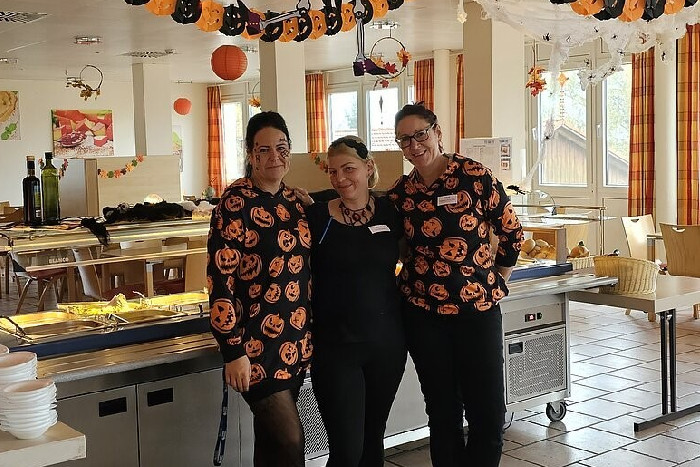 Doch das ist noch längst nicht alles! Am Halloween-Abend erwartete unsere kleinen Gäste eine furchteinflößende Überraschung. Unser Speiseraum öffnete seine Türen für ein unheimliches Halloween-Büffet! Auch unsere Mitarbeiterinnen hatten schaurig-schöne Kostüme ausgewählt, was sowohl Groß als auch Klein in helle Aufregung versetzte.