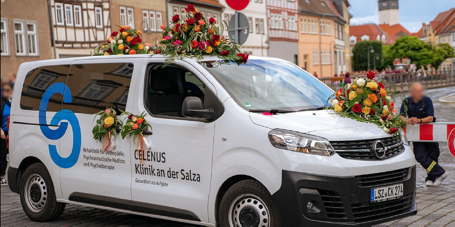 Auch am krönenden Abschluss der Festwoche am 16.06.2024 beteiligten sich unsere Kollegen und Kolleginnen. Sie präsentierten unsere „Celenus Klinik an der Salza“ mit dem mit Rosen geschmückten Firmenwagen, ganz unter dem Motto: „Rosenliebe verbindet“, beim alljährlichen Brunnenfestumzug in der Rosenstadt Bad Langensalza. Besonders mit unseren blauen T-Shirts und den orangenen Beuteln konnten wir viele Zuschauer begeistern. Wir möchten uns hiermit bei allen Mitarbeitenden unserer Klinik für ihr Engagement und ihre Unterstützung herzlich bedanken.