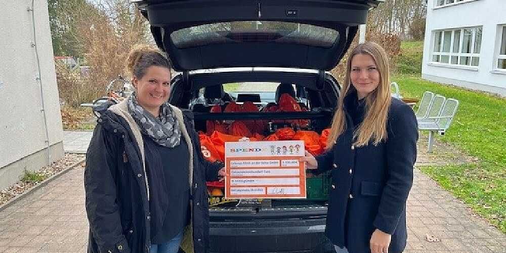 Celenus Klinik an der Salza spendet Weihnachtsbäume, Geschenkebeutel und 1.100 € an das Kinderheim des Internationalen Bundes in Bad Langensalza.